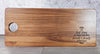 Acacia Cheese Board laser engraved with the last name of Eller