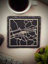 Celebrate the charm of downtown Huntington, WV with this set of four slate coasters, each precisely laser engraved with a detailed map of the city’s center. Crafted from natural 4" square slate, these coasters blend rugged beauty with a touch of hometown pride.